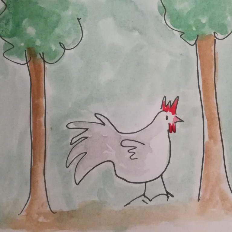 We hebben ook twee kippen en een haan overgenomen van de vorige bewoner. Meike heeft de haan Frank genoemd. Ik ben benieuwd hoe laat Frank opstaat.
