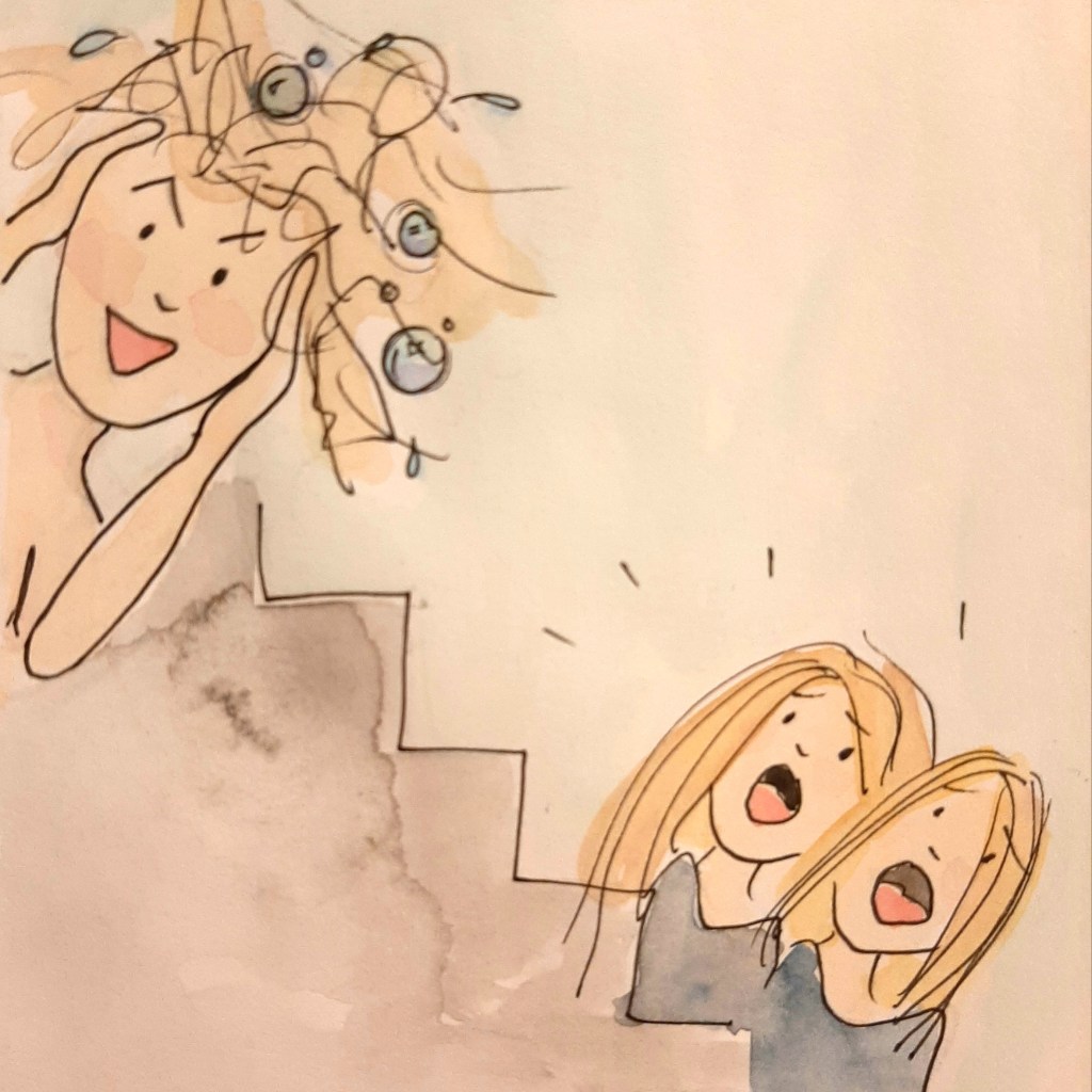 Waar ik op schooldagen Meike en Janne’s ontbijt klaar maak, mogen ze dat nu zelf doen. Ik probeer dan wel alles te negeren wat er daar aan tafel gebeurt (messen aflikken, appelstroop overal náást de boterham, potten die halfdicht weer in het mandje voor broodbeleg gaan). Om stress op de vroege ochtend te voorkomen ga ik dus lekker douchen. Daarna kom ik de schade wel opnemen.