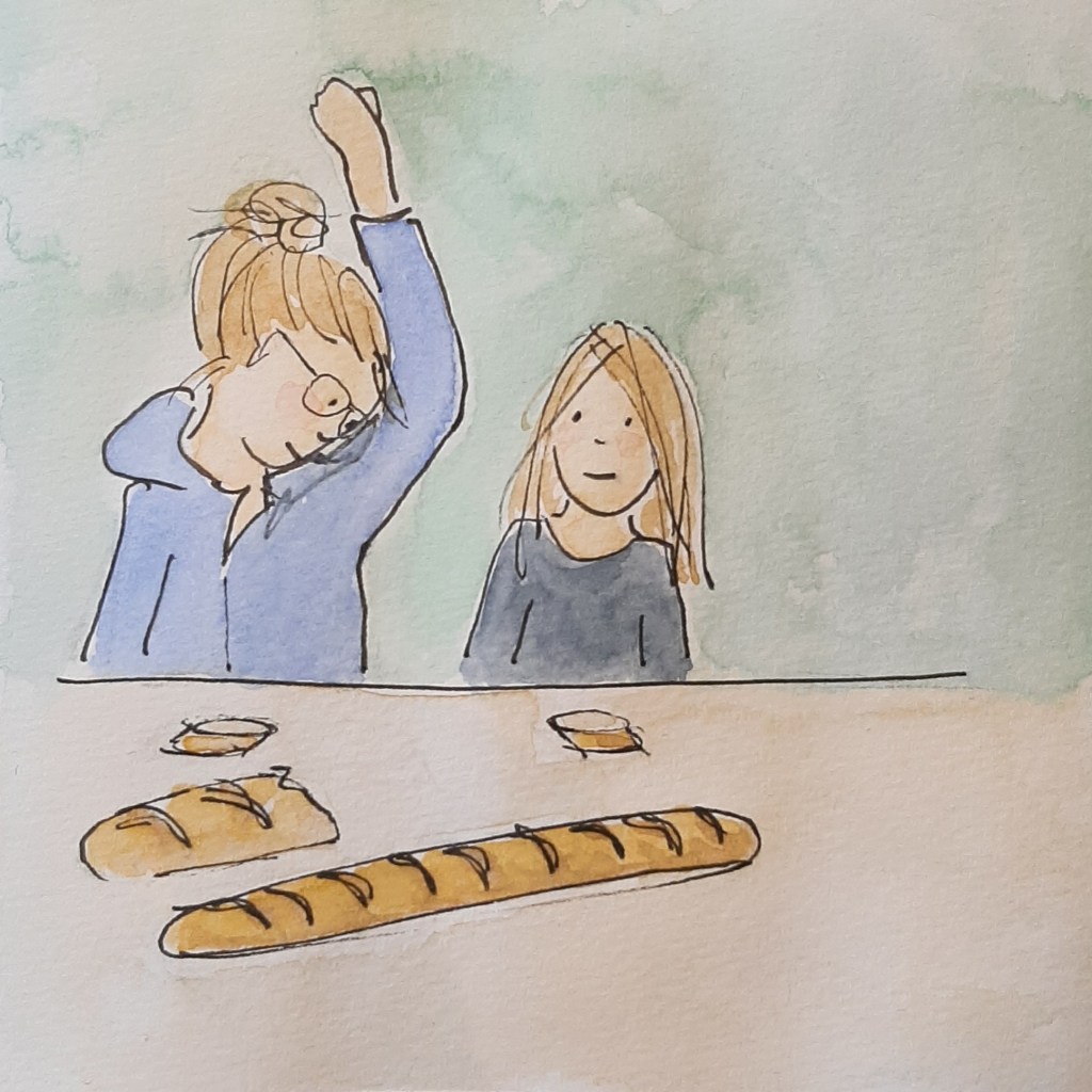 We eten warm stokbrood met kruidenboter. ‘Mmm, dit is echt mijn lievelings!’ roept Meike enthousiast. ‘Weet je,’ zegt ze dan voorzichtig terwijl haar ogen beginnen twinkelen, ‘als ik dit proef moet ik ergens aan denken…’