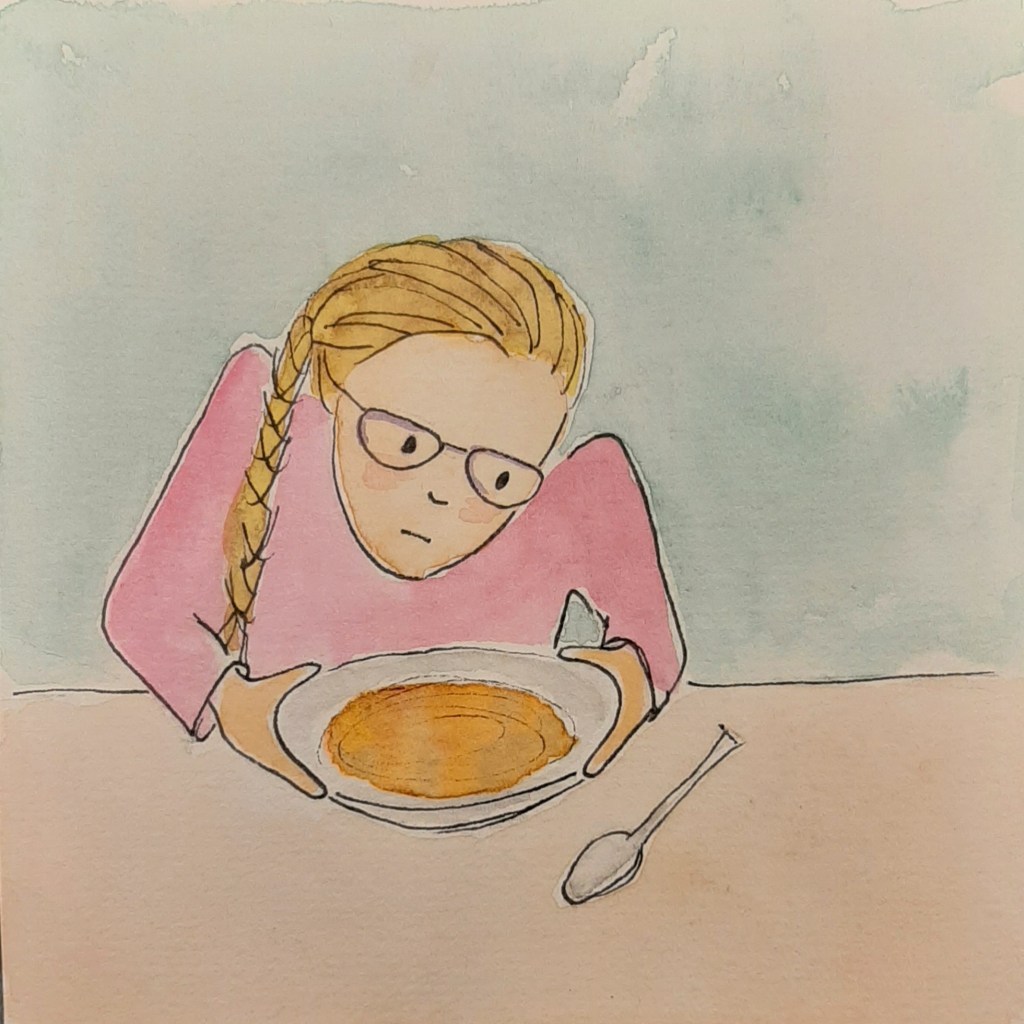 We eten soep. ‘Wat zit erin?’ vraagt Meike. ‘Het is tomatensoep,’ zeg ik. Janne houdt niet van soep en kijkt met veel argwaan naar haar bord. ‘Met tomaat en prei en wortel?’ vraagt Janne. Dan weet ze in ieder geval wat haar te wachten staat. ‘Ja,’ zeg ik. ‘Het smaakt naar bruine bonen,’ zegt Meike na een eerste hap. ‘Zitten er bruine bonen in?’ ‘Nee,’ antwoord ik naar waarheid.