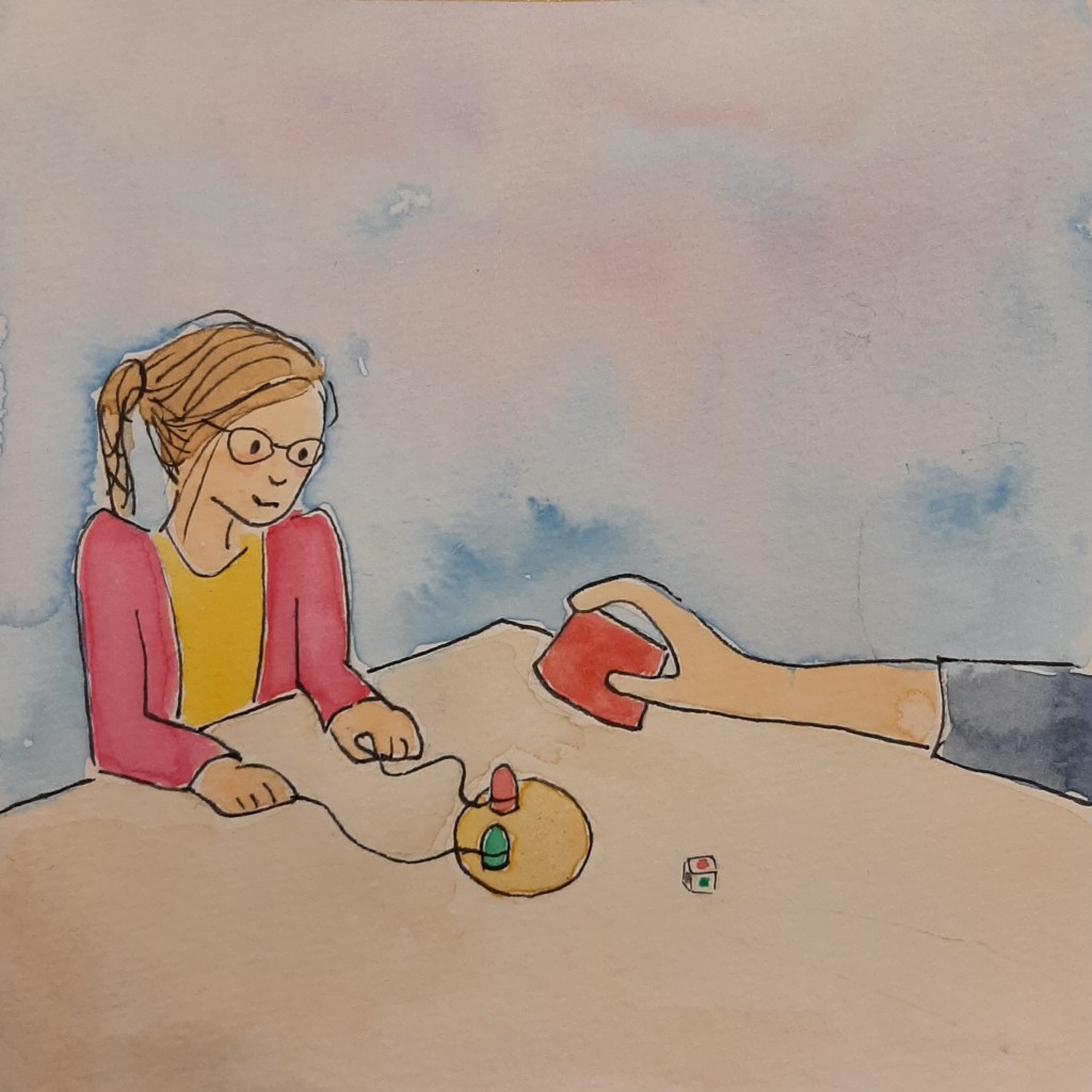 ‘Janne, wat wil jij drinken?’ vraagt oma wanneer we even samen koffiedrinken. ‘Hebben jullie ook druivensap?’ vraagt Janne. ‘Ja,’ zegt oma. ‘Yes, dat wil ik!’ zegt Janne enthousiast. ‘Ik ben blij dat ik geen dier ben,’ vertrouwt ze me dan fluisterend toe. ‘Of iemand anders. Anders kon ik het ook níet lekker vinden.’