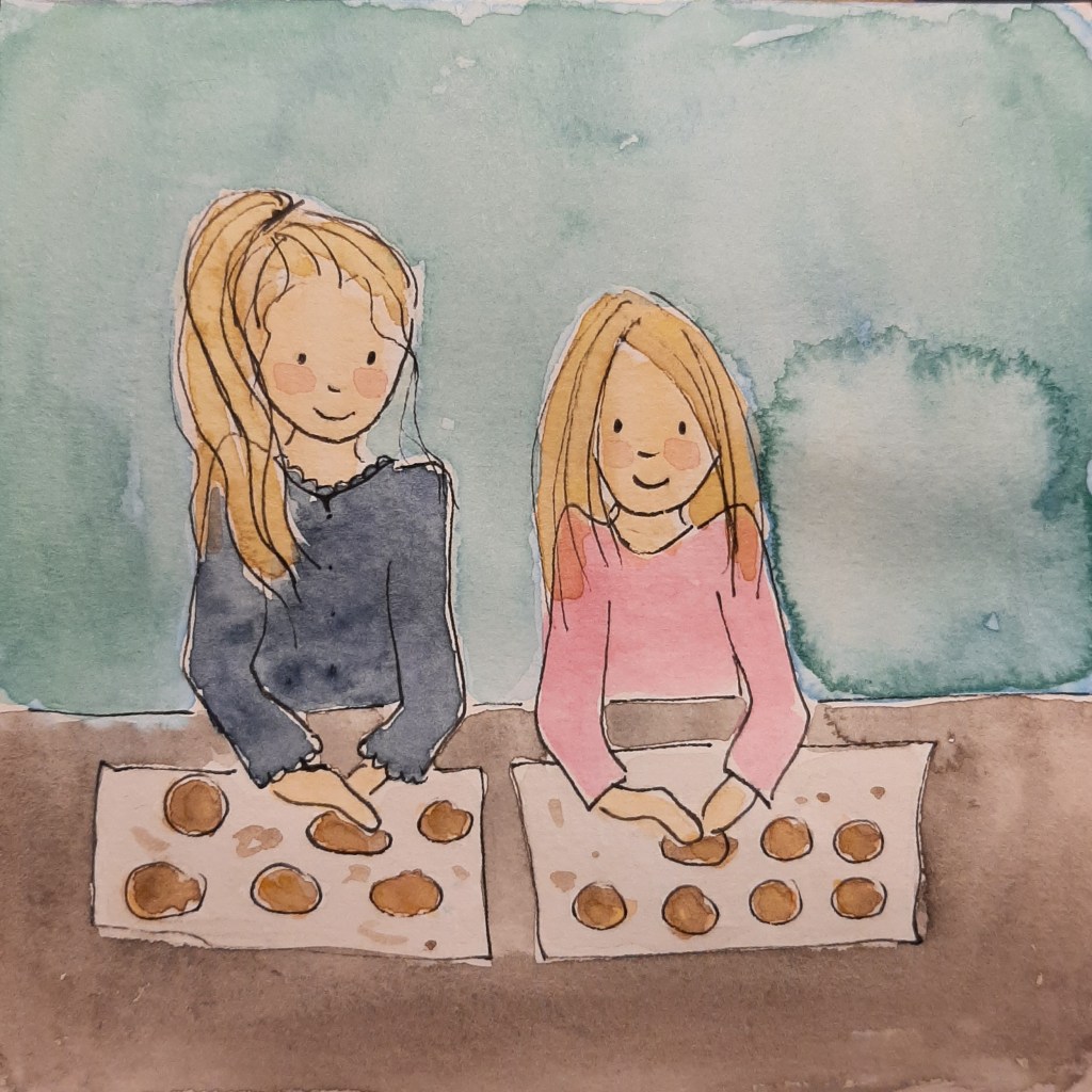 Na school wil ze graag met een vriendinnetje wat bakken. Er komen allemaal zeer bijzondere niet-zo-doodgewone ideeën langs. ‘Jullie kunnen een cake bakken of koekjes. Gewoon volgens standaard recept,’ begrens ik de mogelijkheden. Ze gaan voor de koekjes. ‘Mag er dan nog iets door het deeg? Hebben we nog witte chocola?’ probeert Meike toch nog even. ‘Vooruit,’ geef ik toe. Het worden chocoladekoekjes met stukjes witte chocola. We geven deze “doodgewone maandag” een upgrade naar “gewone maandag”. Iéts minder saai.