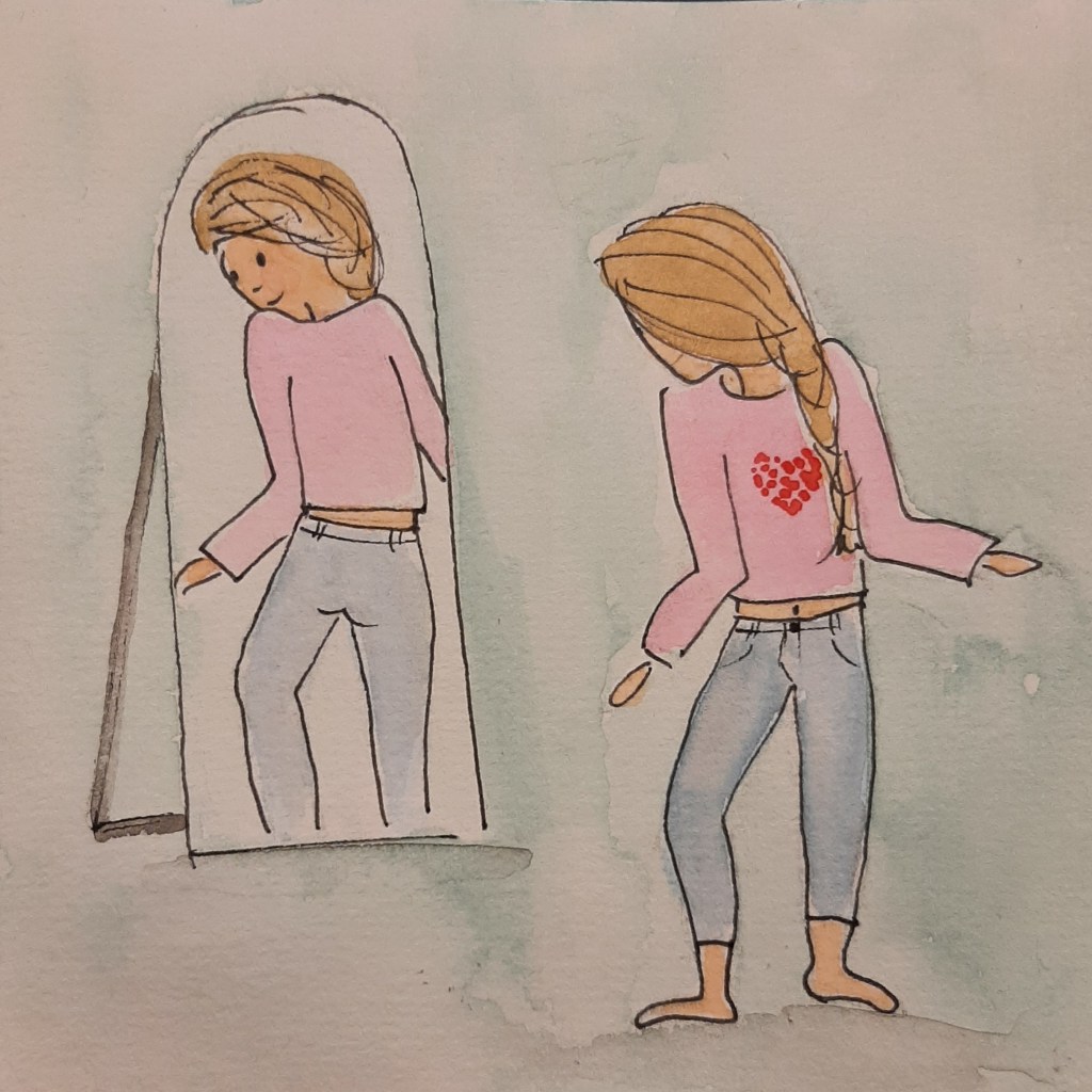Dan past Janne al haar kleding. Plus de doorgeschoven kleding. En dan ontstaat er dus een ophoping. Waar ik bij Meike namelijk probeer nog wat kleding in de kast te houden, moet ik bij Janne duidelijk aangeven wat echt niet meer past. ‘Maar mama, ik vind strakke dingen juist fijn! Een beetje kort… Fijn voor de lente…’ legt ze uit terwijl ze in een veel te strak en te kort spijkerbroekje staat te draaien voor de spiegel.
