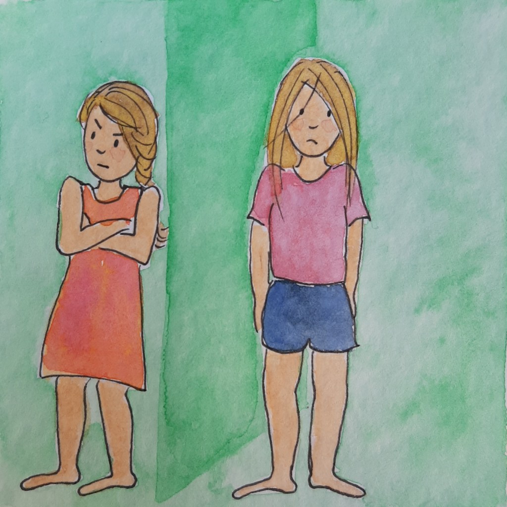 De spanningen lopen wat op in huis. Meike is over twee nachtjes jarig. De voorbereidingen voor haar feestje morgen zijn in volle gang. En er wordt íets sneller ruzie gemaakt. Meike en Janne hebben daarin zo hun eigen tactieken. Janne is boos en negeert haar zus. ‘Nou heb ik niemand om mee te praten,’ zegt Meike gepikeerd. ‘Behalve mezelf. Maar dat doe ik het liefst op de wc,’ zegt ze een tikkeltje beschaamd.
