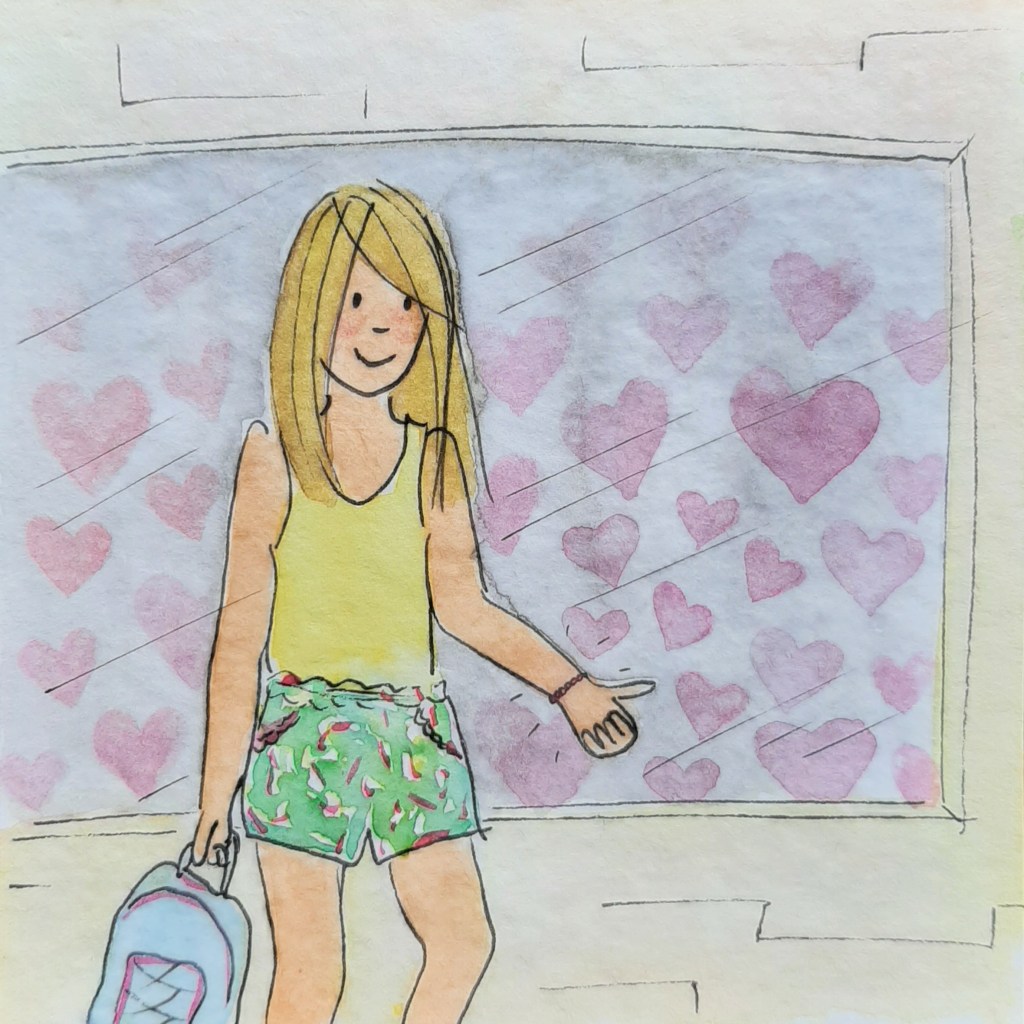‘Mama, kijk eens!’ roept Meike wanneer ze de school uit komt lopen. Ze duwt haar pols met een mooi roze armbandje onder mijn neus. ‘Er lag een roze zakje op mijn tafel toen ik mijn tas had gepakt in de lunchpauze. Met “Meike” erop. En dit armbandje zat erin. En M. had een blauw armbandje om. En toen meester vroeg of iemand nog iets leuks had gedaan in het weekend, zei M. dat hij armbandjes had gekocht. En M. vroeg vandaag wel twéé keer of ik het mooi vond,’ vertelt ze enthousiast. ‘Maar er stond dus niet op van wie het was? vraag ik. ‘Nee,’ zegt ze met stralende ogen.
