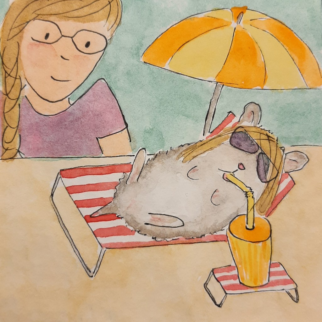 We passen op Darcy. De dwerghamster van ons nichtje. Meike en Janne zijn heel enthousiast. ‘Ik zou zó graag een dwerghamster willen zijn!’ zegt Meike. ‘Ja! Zullen we spelen dat jij mijn dwerghamster was?’ roept Janne enthousiast. ‘En dan had ik zo’n zonnebrilletje op en zo’n limo met een rietje op zo’n lange stoel en dan kon jij me niet vinden!’ gaat Meike verder.