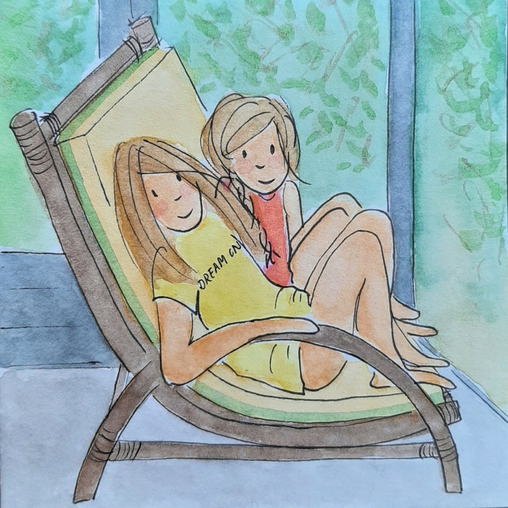 Ik kreeg van de overbuurvrouw een oude rotanstoel. Er moest nog een kussen in, dus ik bestelde een stuk schuimrubber. Vandaag naaide ik daar een mooie hoes omheen. Voor een heerlijk solitair lees- en naar-buiten-kijk-plekje in mijn atelier.