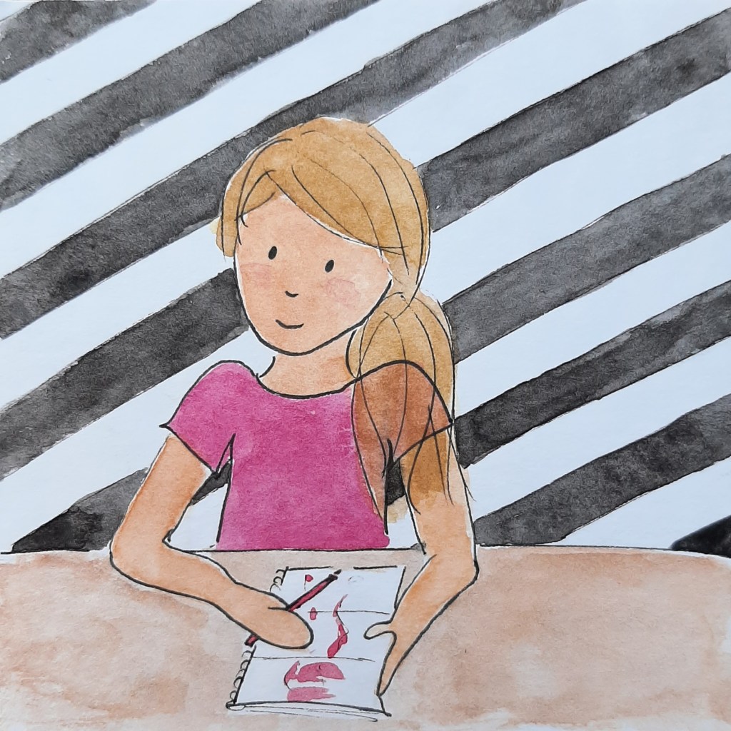 Janne zit even bij mij te kleuren in mijn atelier. Gezellig. Muziekje aan. Dan komen de goede gesprekken op gang.