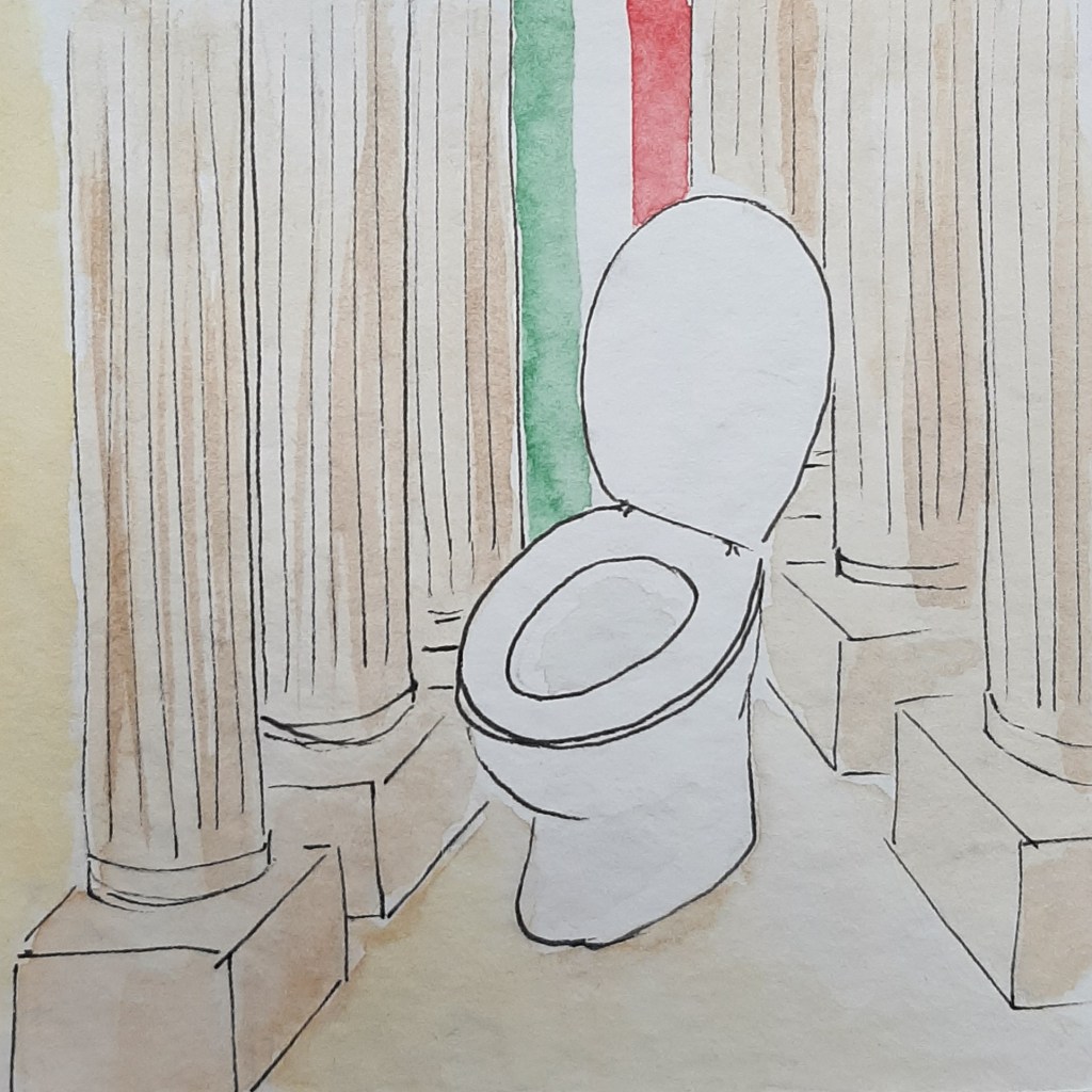 ‘Ga je daar naar een Italiaanse wc?’ vraagt ook Meike geïnteresseerd, wijzend naar ‘Italiaans wc’ op de studieplanning. Het blijkt een werkcollege Italiaans te zijn. Iets minder spannend. Denk ik. Maar het is natuurlijk maar net wáár je precies nog beter in wilt worden.