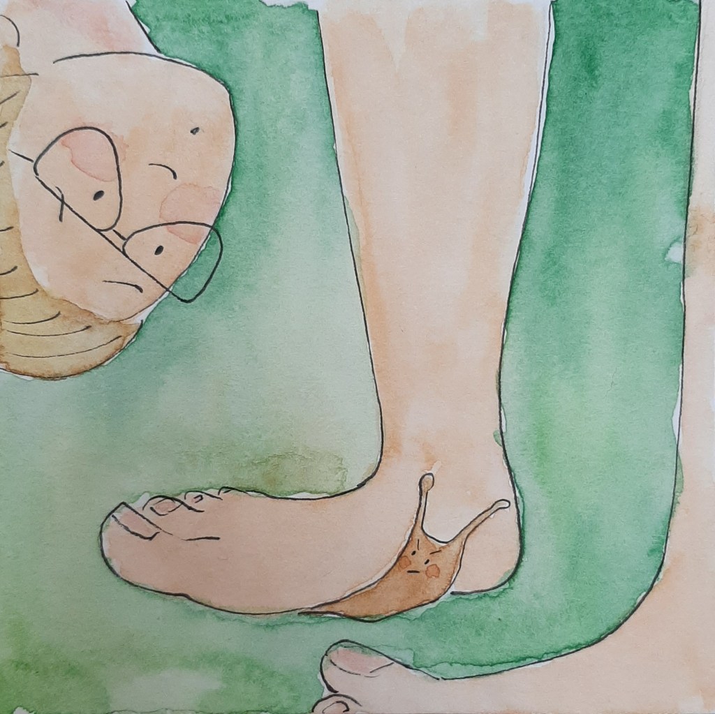 ‘Mama, heb jij weleens met je blote voeten op een naaktslak gestaan?’ wil Meike weten. ‘Ieuhw! Dat denk ik niet,’ zeg ik vol afgrijzen. ‘Jij wel dan?’ vraag ik. ‘Nee, volgens mij niet. Maar wel een keer met mijn schoen,’ vertelt ze. ‘Oh, en hoe voelde dat dan?’ vraag ik nieuwsgierig. ‘Weet ik veel! Ik kan mijn gevoelens toch niet naar het verleden verplaatsen?!’
