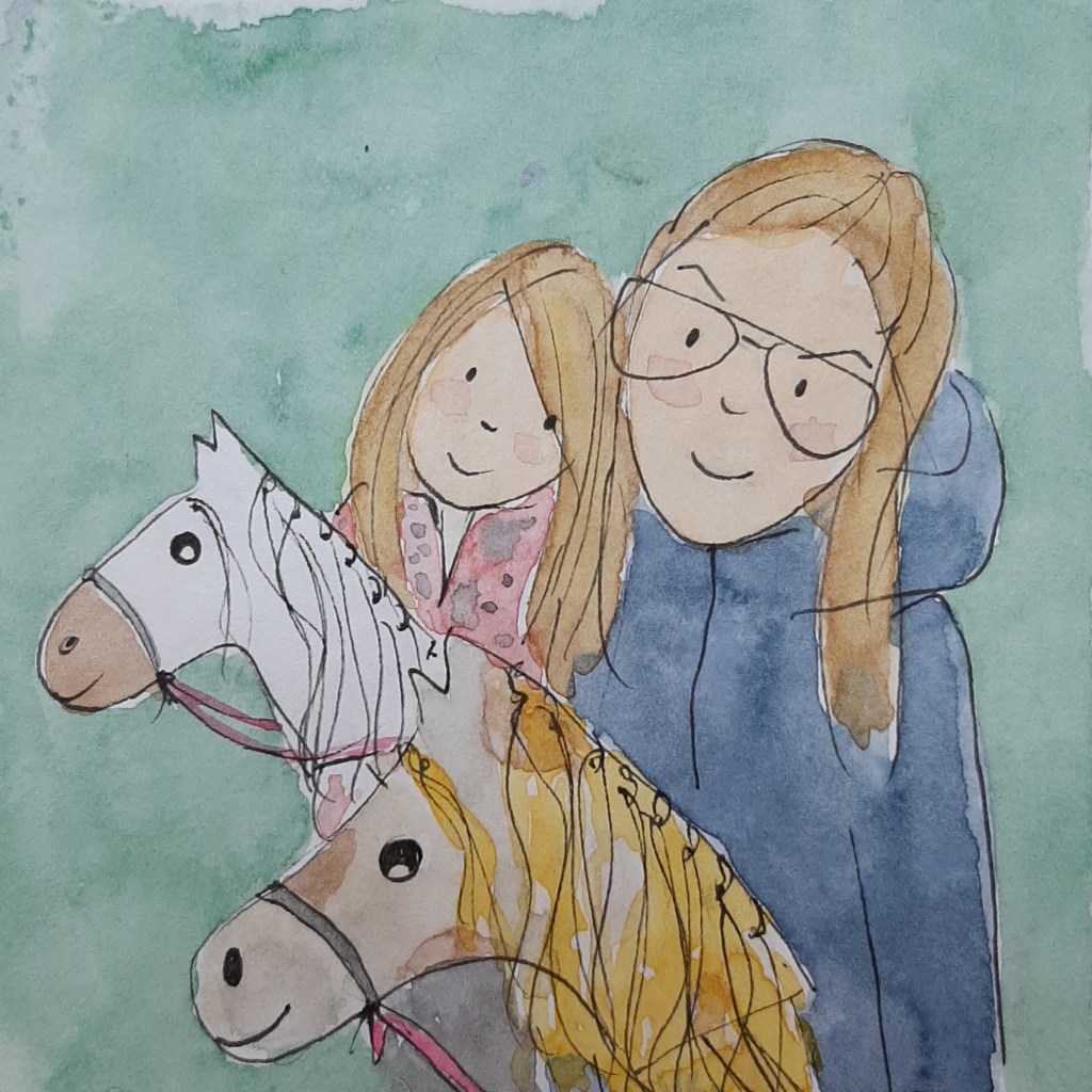 Meike en ik gaan vanmorgen samen naar school. Te stokpaard. Meike neemt Whitestar, ik mag op Vlekkie. Het voelt even wat ongemakkelijk. Lopen met een stok tussen je benen. Zeker tussen volwassen dijen. Daar gaat het paard toch een beetje van waggelen. Maar ik laat me niet kennen en we draven lekker over het centrumplein. Op naar school.