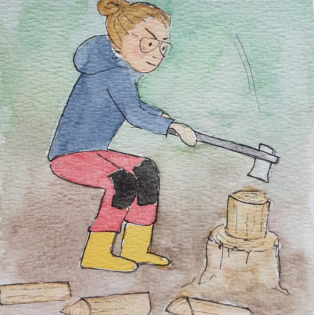 Terwijl Jacob, Meike en Janne vanmorgen al vroeg vertrokken naar Winterberg om te skiën, stapte ik ook op tijd uit mijn bed. Ik ging als een wervelwind (in de stralende zon) al mijn obsessies af. Ik bakte een paddestoelen-walnotenbrood. Ik bakte twee bananenbroden met abrikozen en noten (van de zwartgeworden bananen op het aanrecht). Ik experimenteerde met tie dye op basis van thee en kurkuma. Ik hakte hout. Ik schuurde takken. Ik verzamelde boomschors voor nog wat natuurlijke verf experimenten. Ik begon aan een nieuw breiproject. En ik maakte ratatouille op de barbecue.