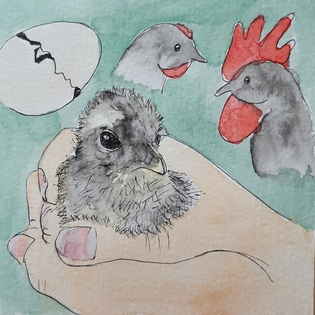 Nu maar hopen dat het drie hennetjes zijn. We hebben al een haan. Met meerdere haantjes krijg je gedoe. Net als bij mensen. Over het lot van de haantjes wordt al flink gediscussieerd hier in huis.