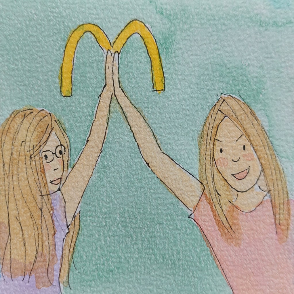 ‘Wat gaan we met eten doen?’ vraagt Jacob. We zijn weer onderweg naar huis en etenstijd nadert. Terwijl ik aanstalten maak om daar over na te gaan denken, pleiten Meike en Janne vol overgave voor McDonald’s. ‘Laten we onze vakantie dan maar goed afsluiten en langs de McDonald’s gaan,’ geef ik toe. ‘Jaaaah! Nu slaan we twee vliegen in één klap! We irriteren papa èn we gaan naar de McDonald’s!’ roept Meike terwijl ze Janne lachend een high five geeft.