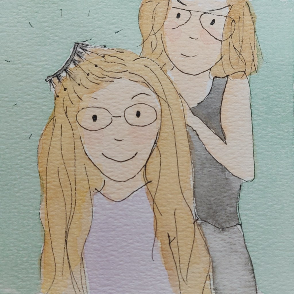 Ik probeer hem thuis direct even uit op hun haar. Geen ‘Au! Je doet me pijn! Niet zo hard!’ dit keer. Maar een zuchtend ‘Oh… lekker!’